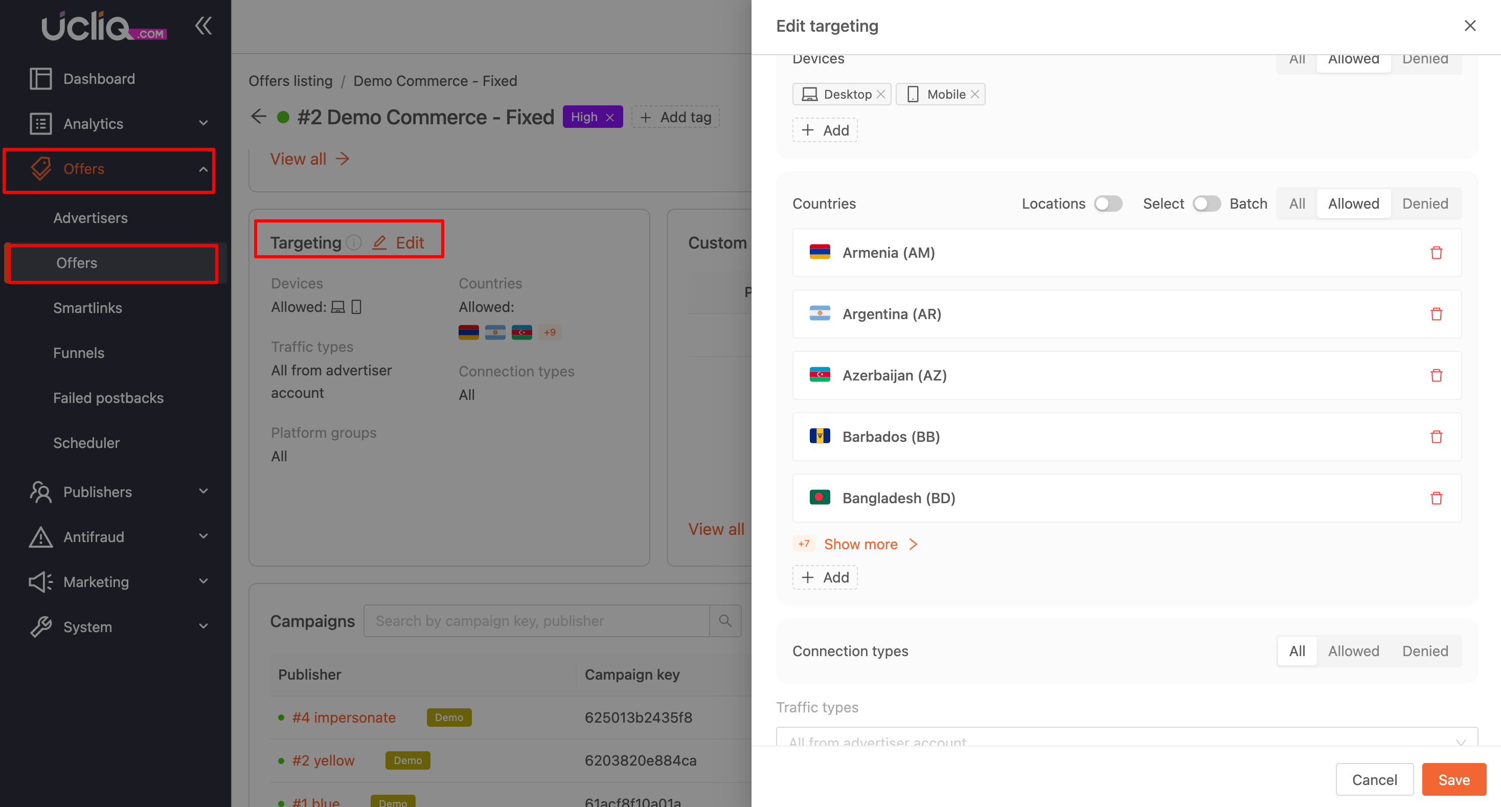 Targeting in UCLIQ offers is a flexible and powerful feature that allows precise control over which traffic reaches your offer, ensuring only relevant users see it. Proper targeting enhances conversion rates and minimizes irrelevant traffic by directing users based on geography, device, traffic type, and more.