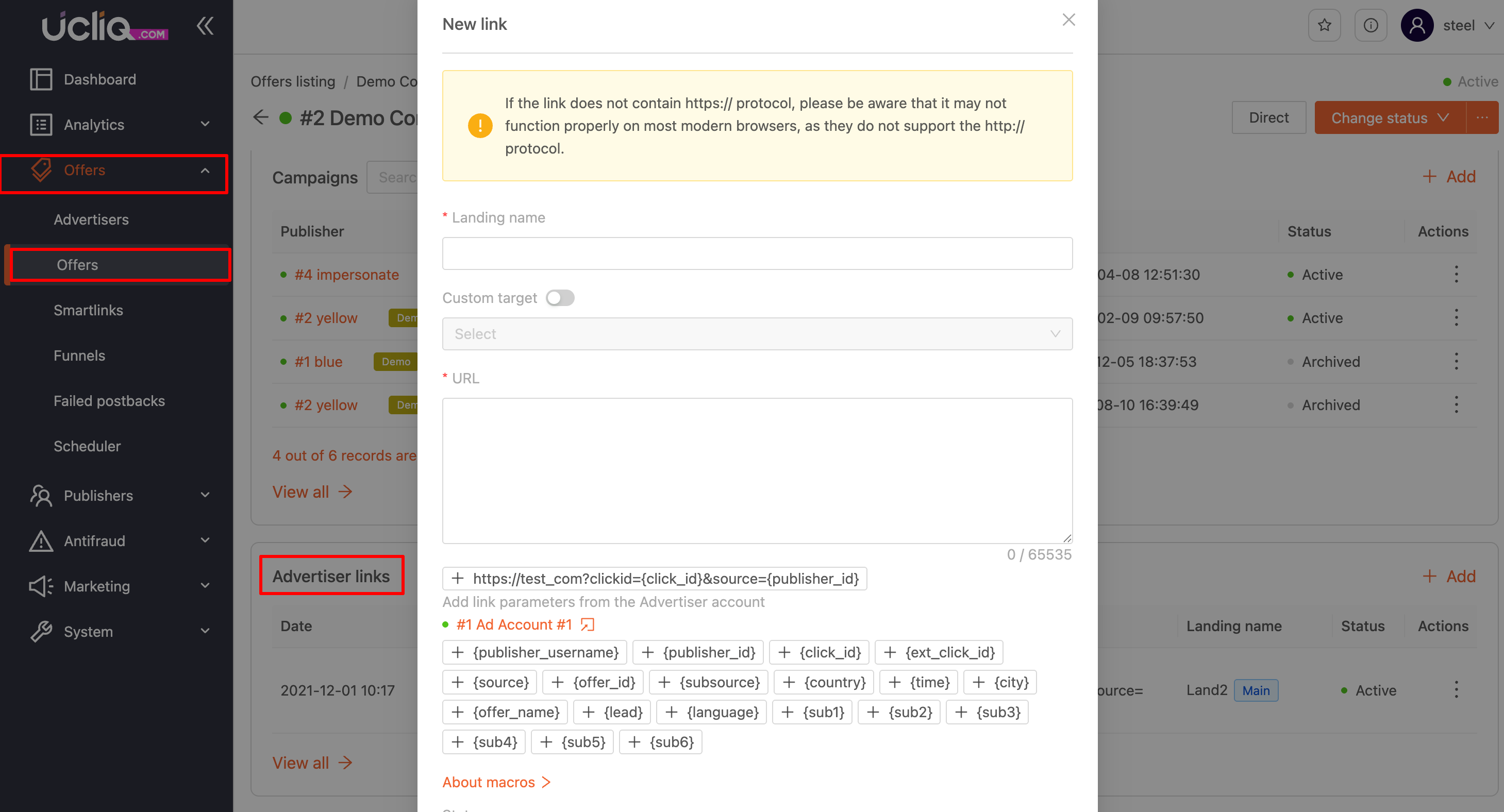 Mandatory Macros in Advertiser Links