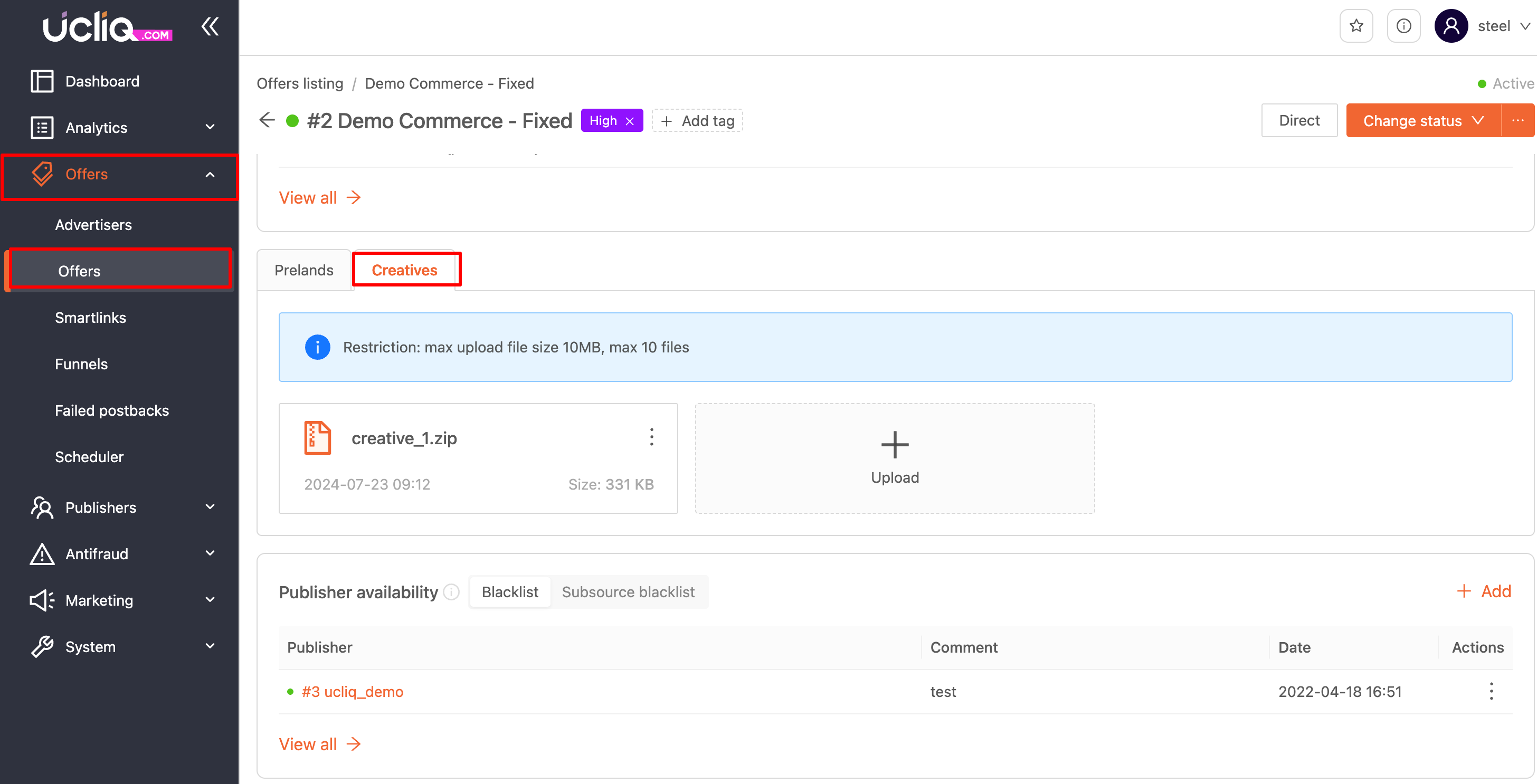 Go to Offers > Creatives.