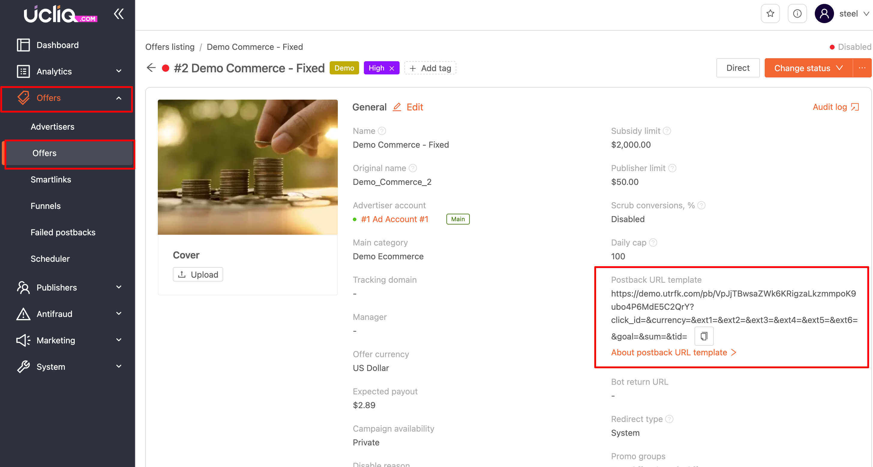 Go to the Offers > Specific offers > find Postback URL Template in the general widget: