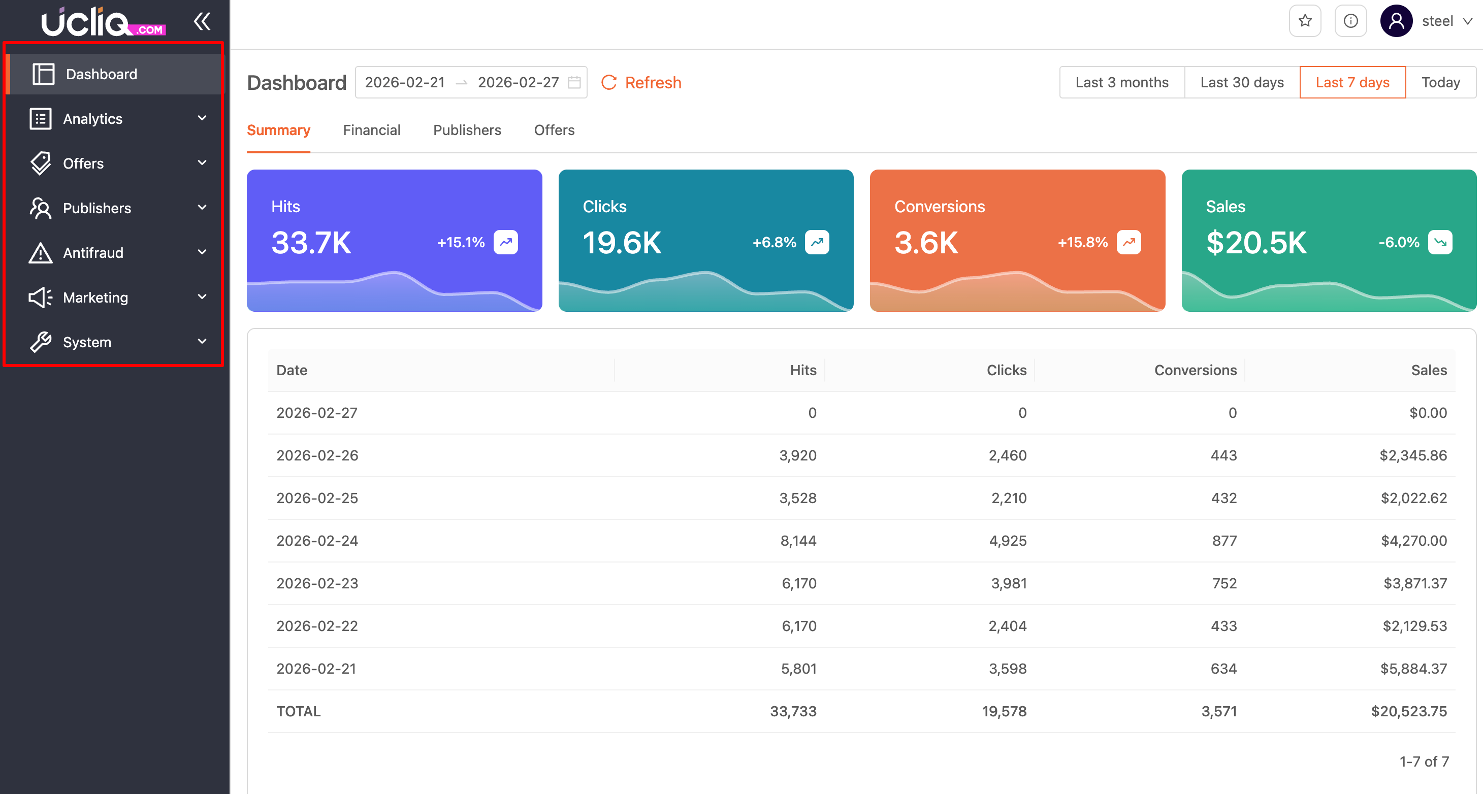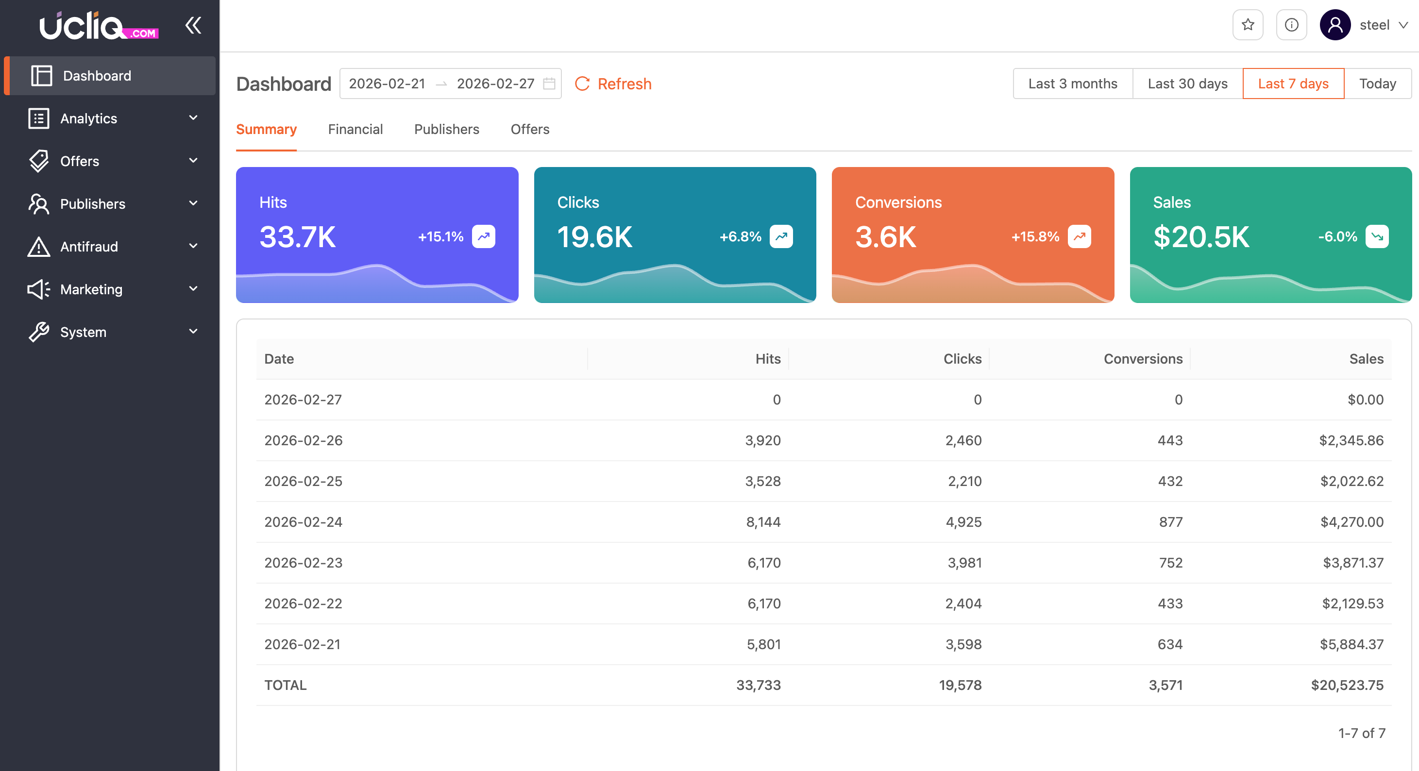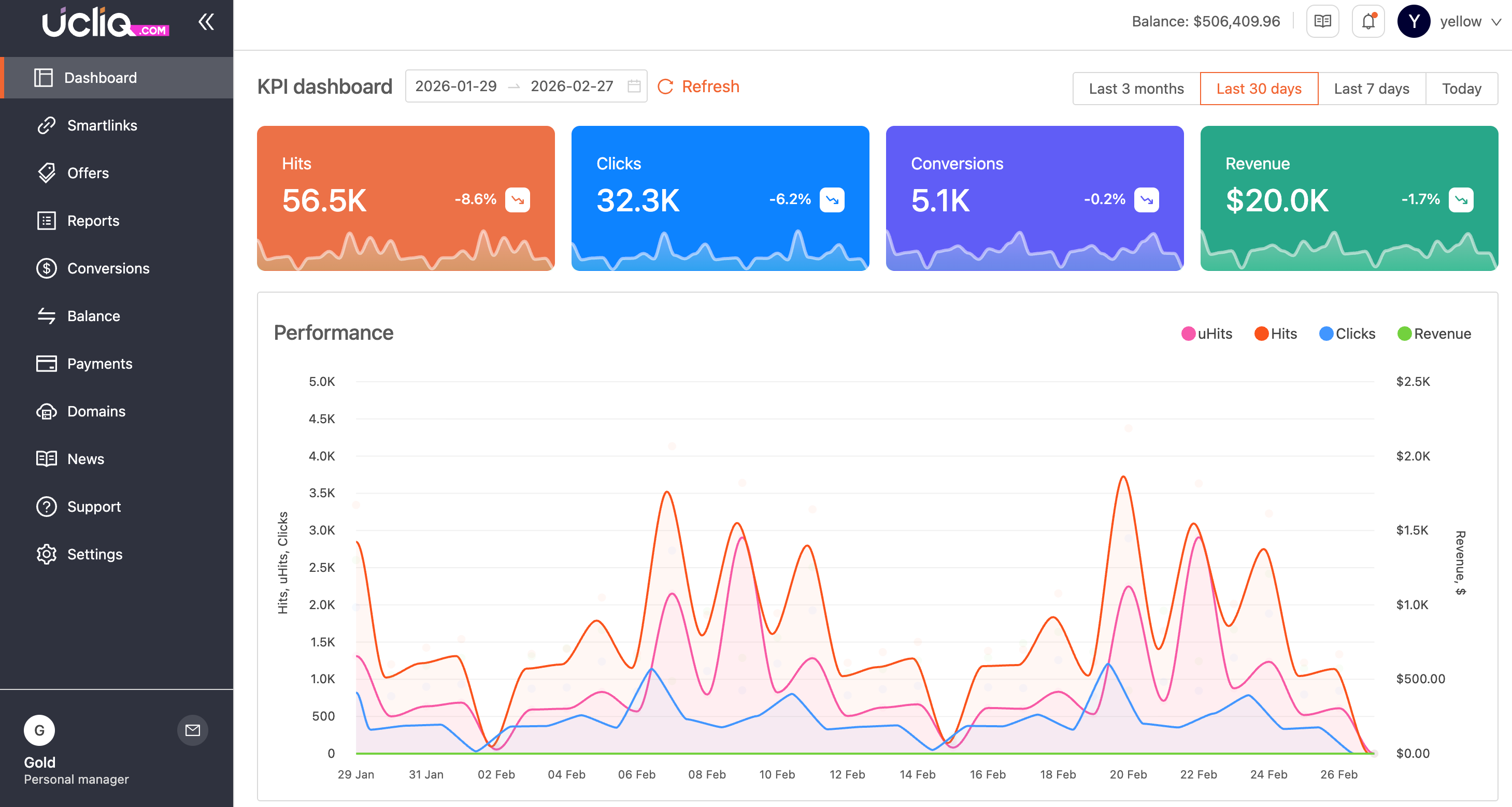 Go to the Analytics tab to get familiar with how reports are structured. You’ll be able to see KPIs, conversions, clicks, and revenue from your offers.