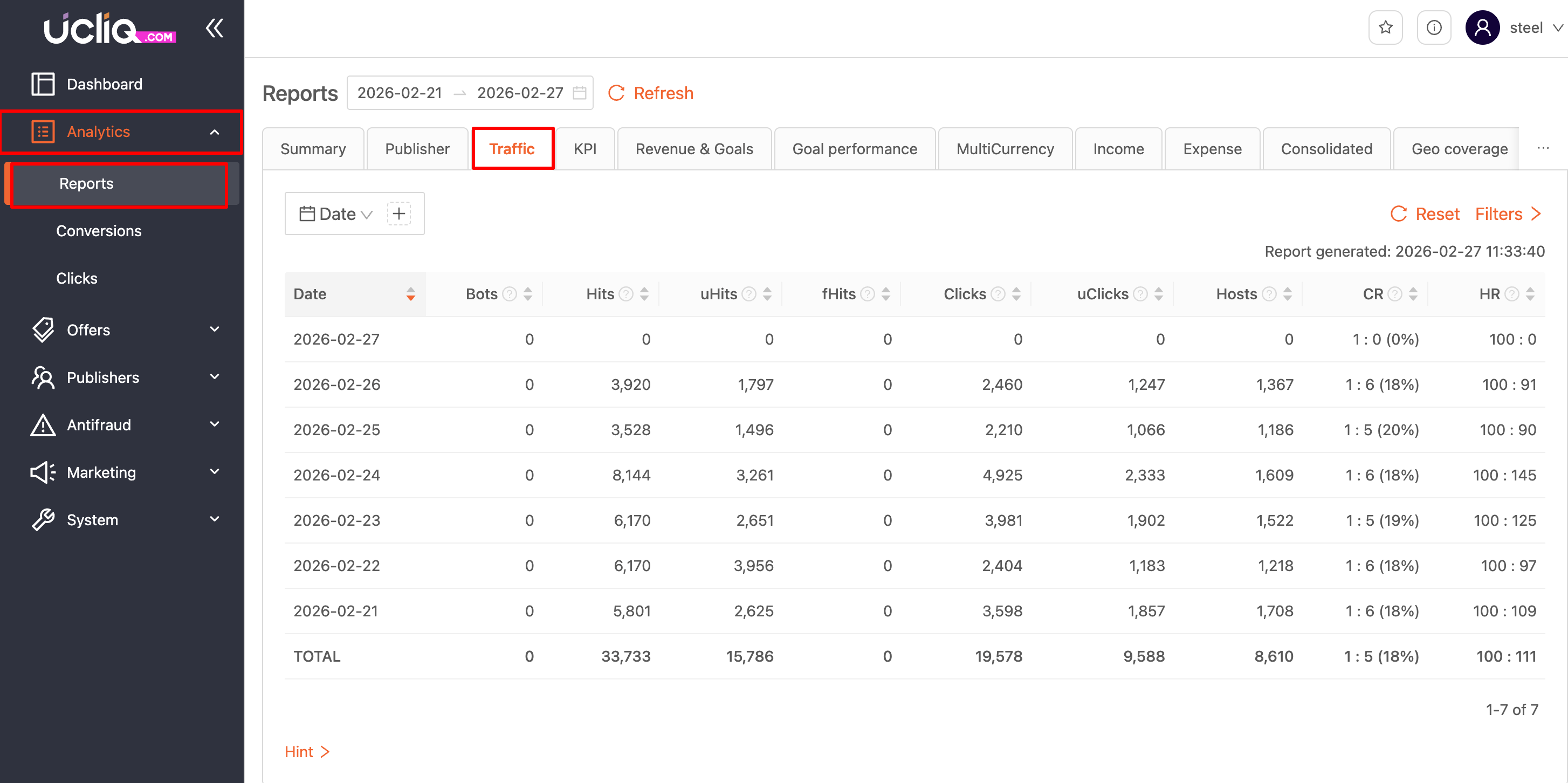 The traffic report helps you analyze the quality of the traffic and its sources in more detail.